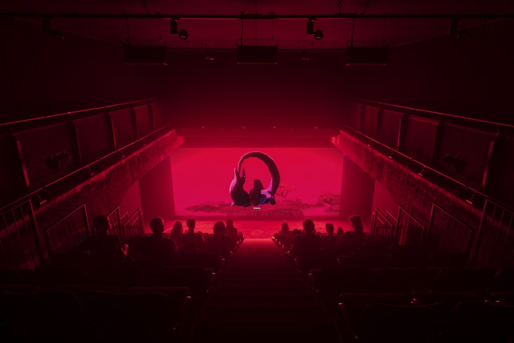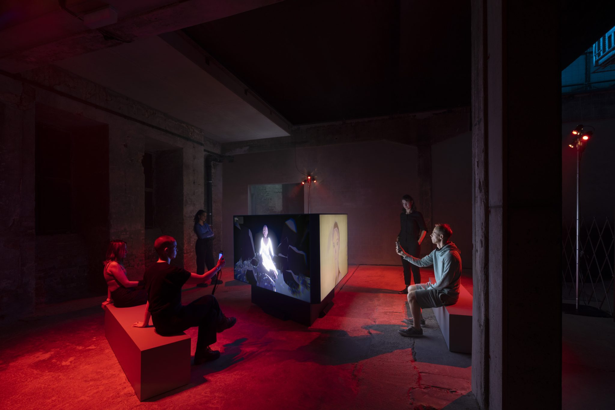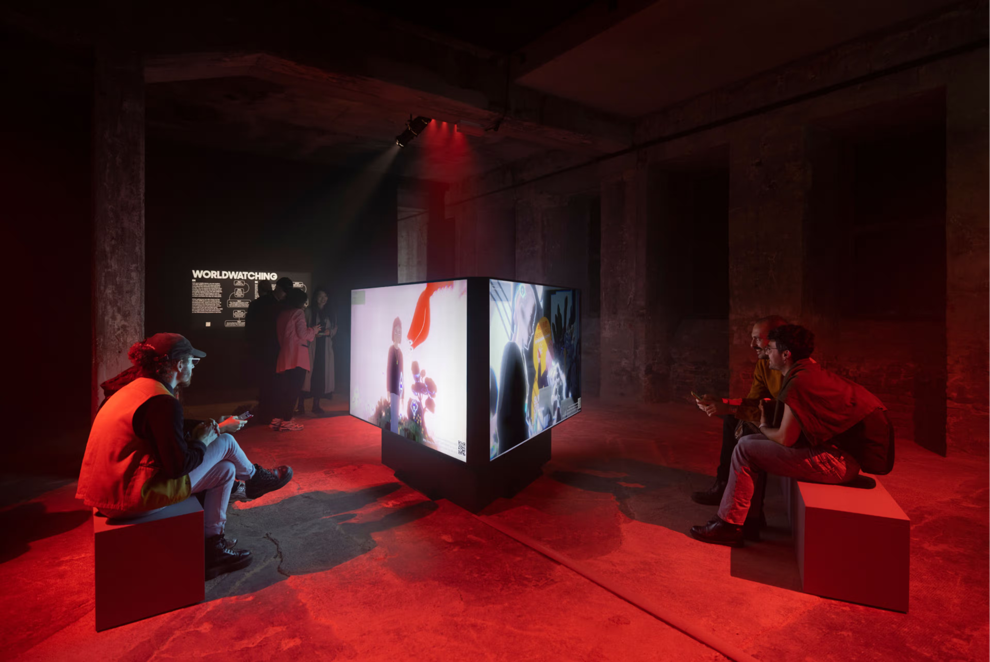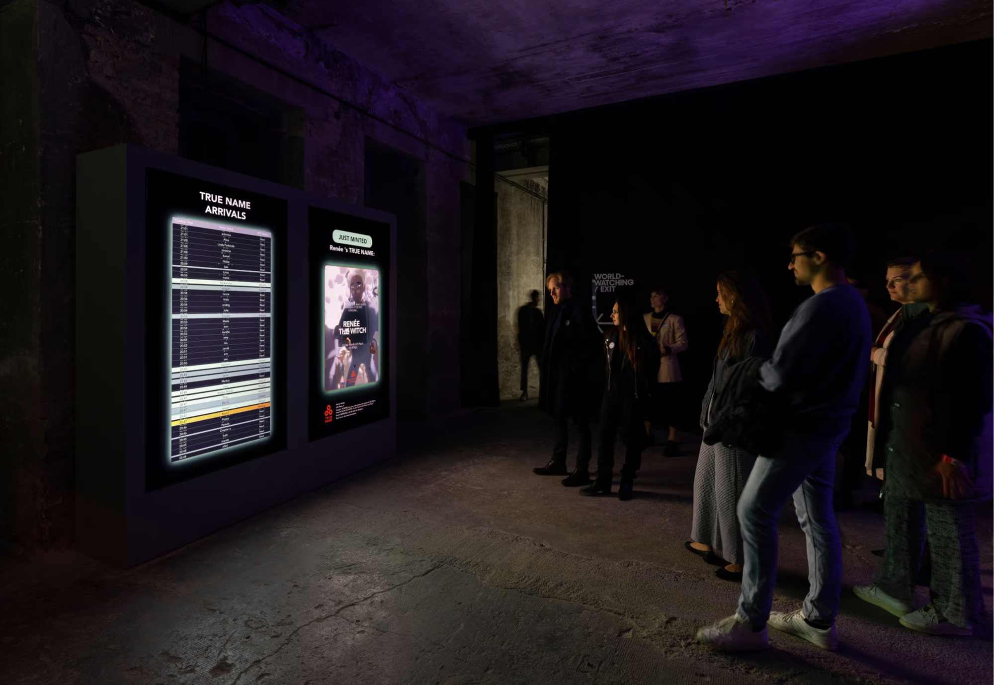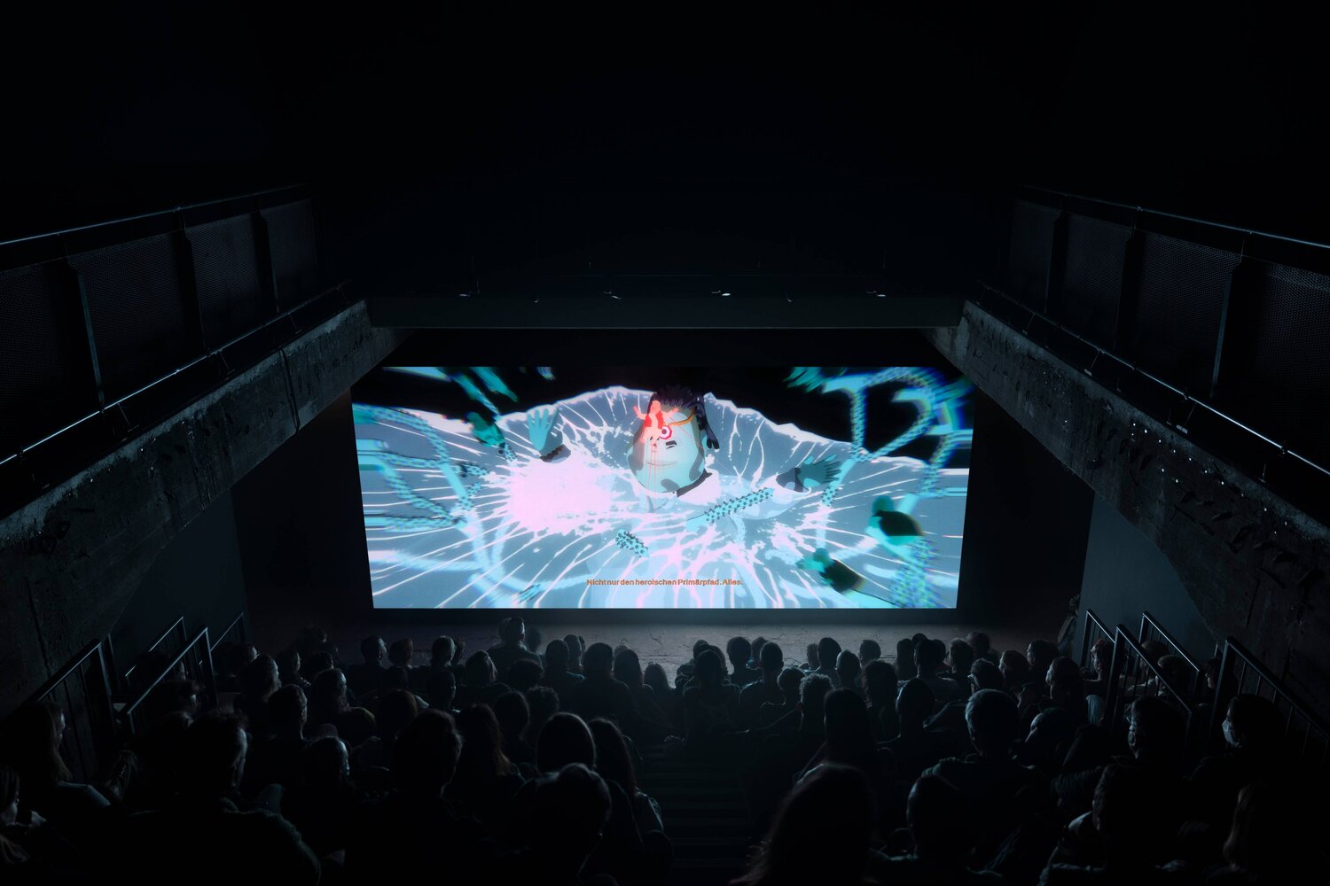 Complimenting the linear film, which is screened on a strict time schedule, there is also an open-ended "worldwatching" mode: visitors can use their own devices to pause any scene and tap on any character, artifact, or entity in the frame to explore its lore and mythology. The film premiered at the Luma Foundation in Arles and subsequently showed at The Shed in New York and Light Art Space in Berlin.
