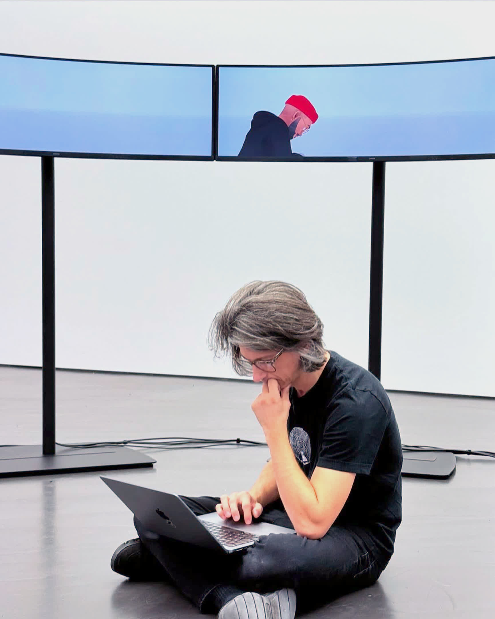 Ryan Waiting is a work by artist Ryan Gander in which a digital avatar of the artist is designed to wait alone in a white void for one hundred years of real time. Accessible through a VR headset or installed in a surrounding halo of monitor screens, the avatar simply exists: idle, present, alive. At its core is an AI brain that self-writes in real time, choosing each movement, sigh, shift of weight, or glance into the distance. Doing so continuously and without interruption, whether or not anyone is watching.