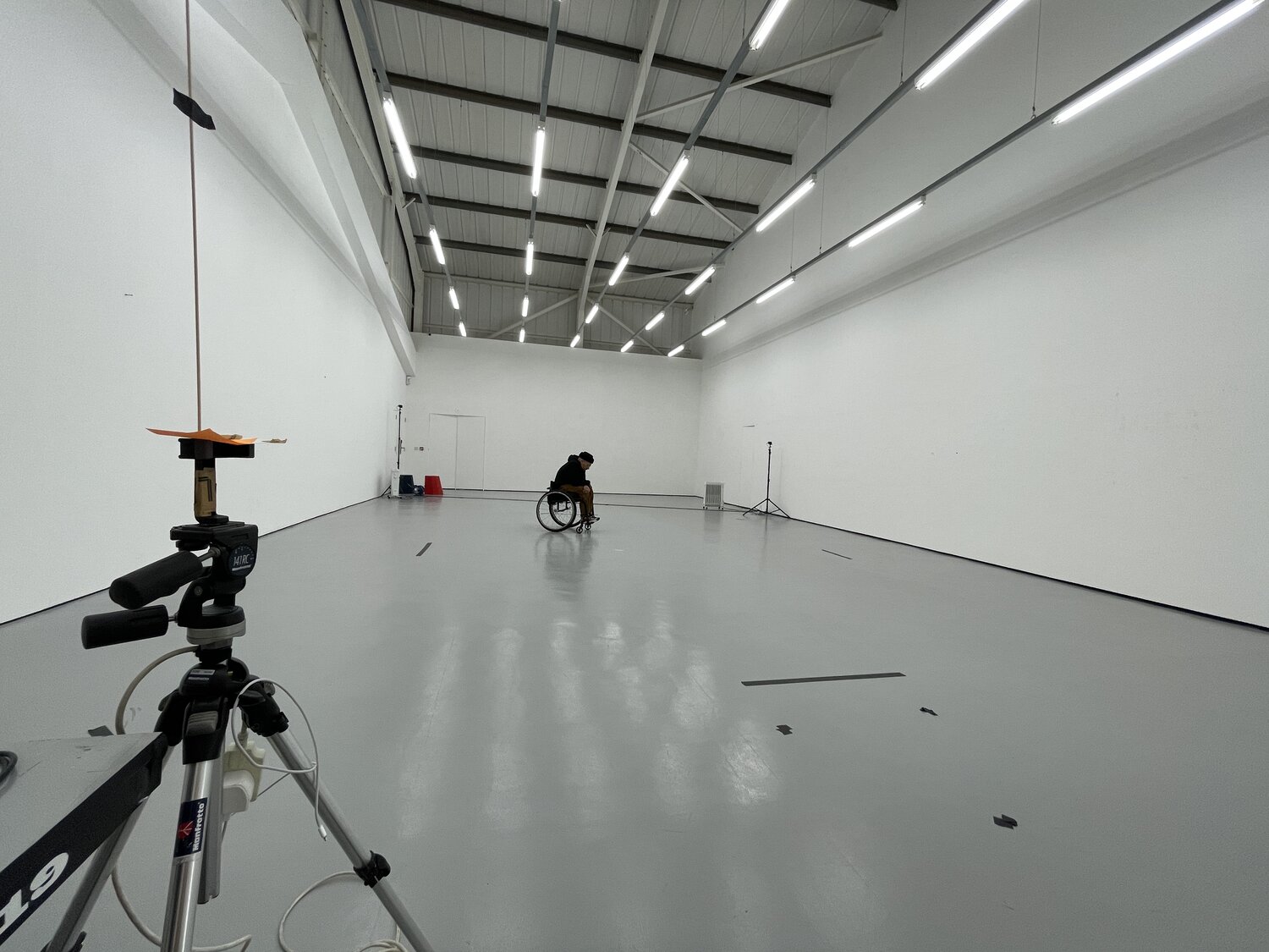 To make the avatar recognizably *Ryan*, the I set up an ad-hoc capture volume in the artist's studio in England, where the production spent five days in performance capture, filming Gander's every mannerism and idiosyncrasy. The goal was to capture the subtle aliveness of someone with nothing to do in the specific language of Ryan's own behavior.