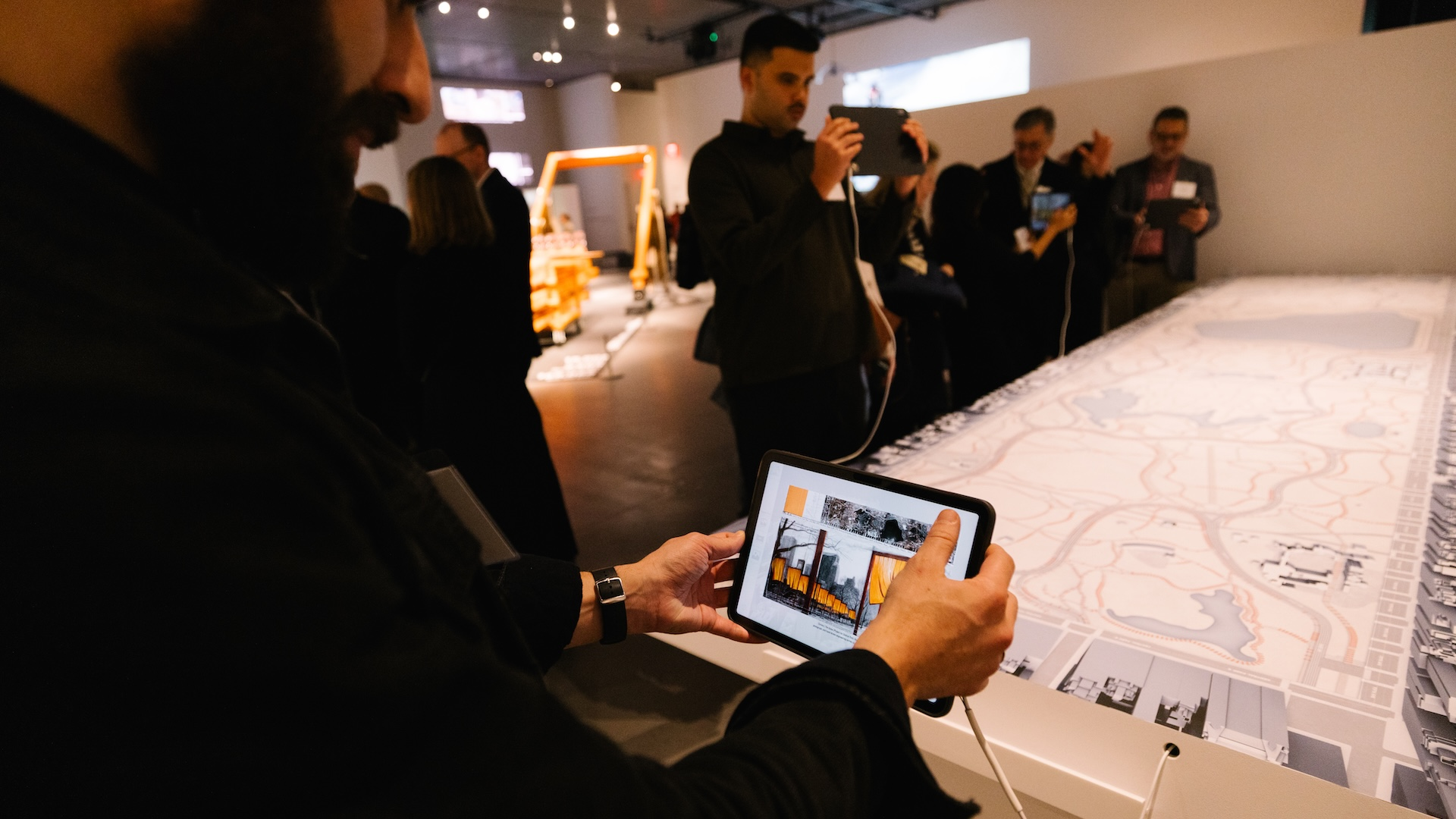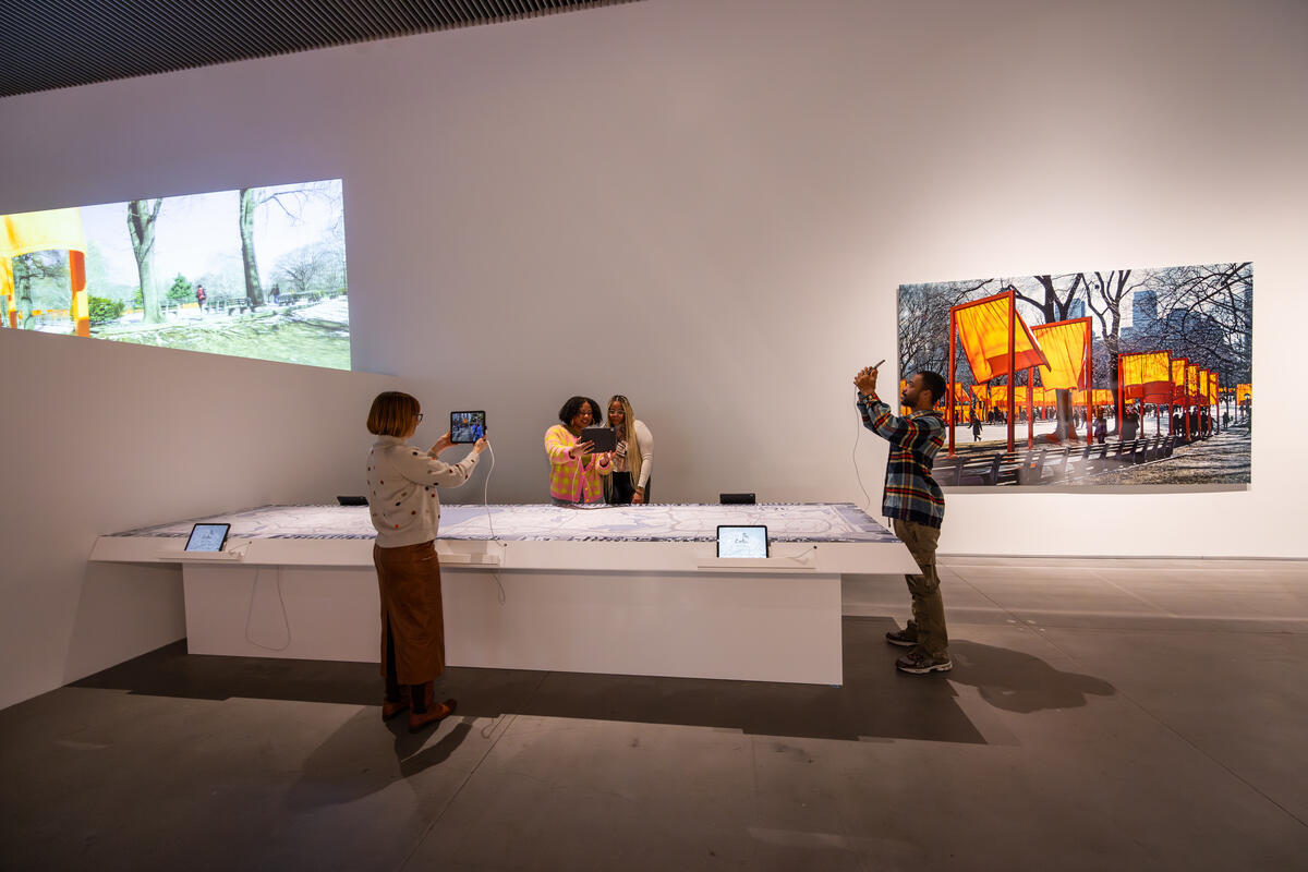 The Gates Interactive Map was a large-scale touchscreen installation created for "Christo and Jeanne-Claude: The Gates and Unrealized Projects for New York City," an exhibition at The Shed in New York. The centerpiece was an 18-foot tabletop display driven by a cluster of iPads, presenting an interactive map of Central Park overlaid with geolocated archival photographs and 360° photospheres from the original 2005 installation of The Gates.